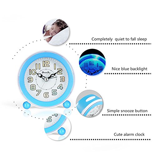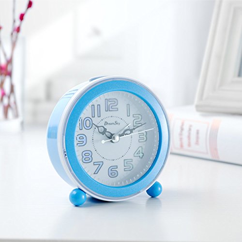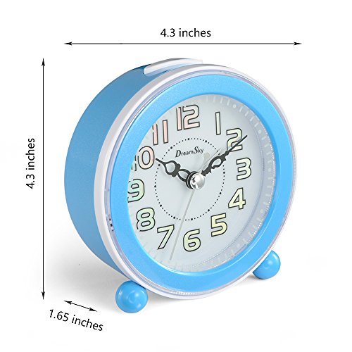 Studio : Amexs Publisher : Amexs Binding : Kitchen Product Description Super Quiet Clock -Classical alarm clock with quartz analog technology , 2 sweep hands , accurate quartz movement and super quiet , No ticking Music Alarm With Snooze - Melody alarm wake you up naturally instead of typical "beep' sound, The sound loud enough, Do not worry oversleep -The snooze function will let you catch a little extra shuteye, It repeat every 5 minutes -Alarm switch ON/OFF button Clear ,Intuitive Number Display, Easy To Setup -Big and intuitive number display enable you see the time across the room. -Easy to set up ,One knob to set time and alarm time Built In Nightlight - Simply press the top button to activate for night viewing. -To save battery ,Every nightlight will last 4 second and then off automatically. Small And Portable Size ,Made By High Quality Hard Plastic -Small size, battery operated great for use at home or on the go -Made by high quality hard plastic ,durable and long last use. Specifications Product size:4.3 x 4.3 x 1.65 inches Weight:6.35 ounces Power supply: 2*AA (1.5V)batteries (not included) Package 1* DreamSky alarm clock 1*User manual Note: Replace batteries is needed while back light become weak 0