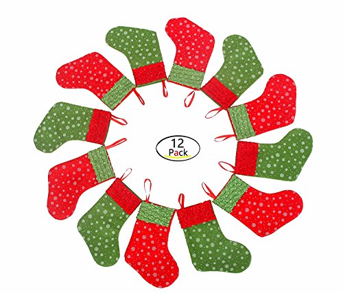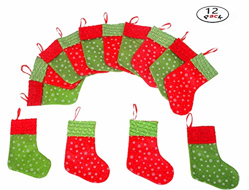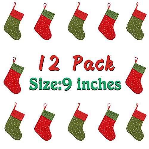 Solucky 12PC Mini Christmas Stockings with Snowflake, 9'' Party Decorations/Gift Bags, Red & Green