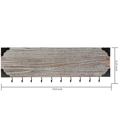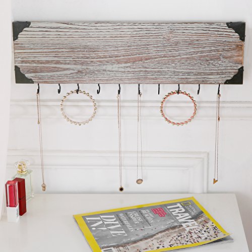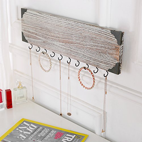 10-Hook Rustic Wood Wall Mounted Hanging Jewelry Organizer Rack