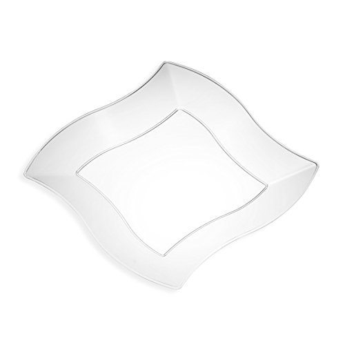 WHATS IN THE BOX?? WAVEWARE Collection heavyweight -CLEAR- Square New Wave 9-inch lunch plates 20 count. The extra wide rim on the sides of the plate will frame your dish into the most beautiful platter at your fine event.