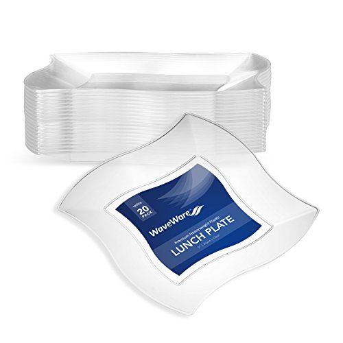 WAVEWARE CLEAR PLASTIC PARTY DISPOSABLE PLATES | 9 Inch Hard Square Wedding Dinner Plates, 20 Ct | Elegant & Fancy Heavy Duty Hard Party Supplies Salad Plates for Holidays & Occasions