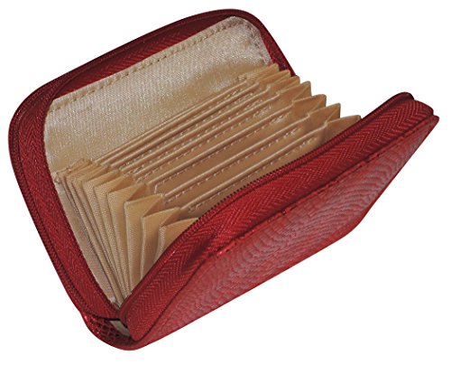 Buxton Womens RFID Accordion Double Zippered Wizard Credit Card ID Holder Travel Wallet (Red - Stripe)