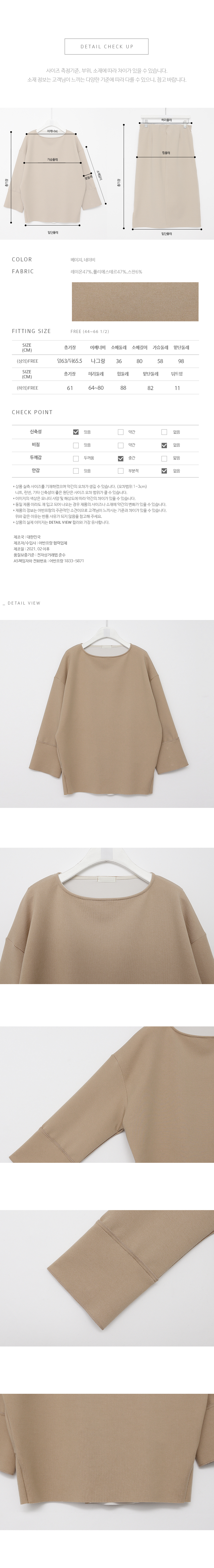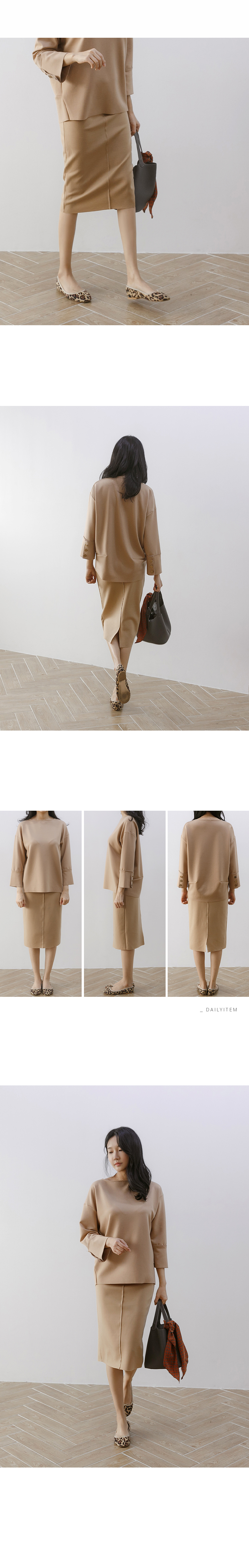스커트는 전체 히든 밴딩으로 사이즈에 크게 구애받지 않고 입기 편하며 자연스러운 컷팅 방식의 디테일이 멋스럽답니다^^