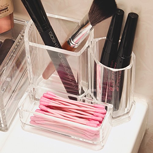 Xuzog Clear Acrylic Cotton Swabs Holder & Swab Cosmetic Storage Case, Makeup Brush Holder