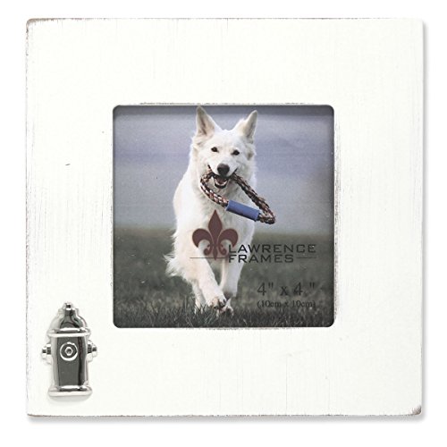 Lawrence Frames Wash Dog Frame with Fire Hydrant Ornament, 4 by 4-Inch, White