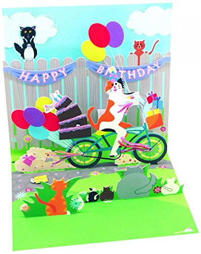 Birthday Greeting Card For Her - Cat and Cake Bike Ride Pop-Up