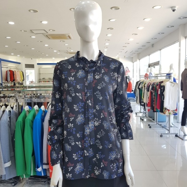 쉬폰소재 플라워 블라우스-CA7F9-WQS030-블랙/프린터