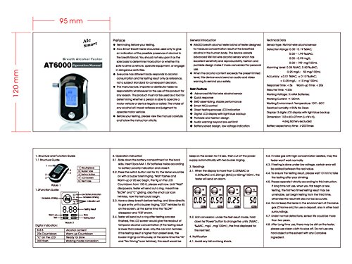 Feature: Pormptly and conveniently design for measuring BAC. A simple method to analysis Blood Alcohol Concentration at anytime and anywhere. It's easy to carry. Digital alcohol tester with audible alert.