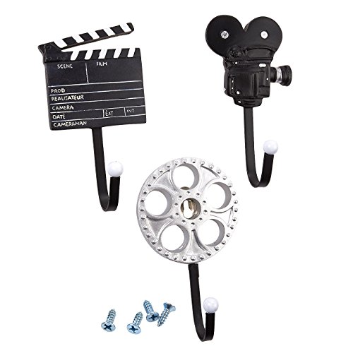 - SET OF 3 DECORATIVE FILM THEMED WALL HOOKS: This set of 3 decorative film-themed iron hooks are ideal for bringing a cool, cinephile atmosphere to your home or workplace