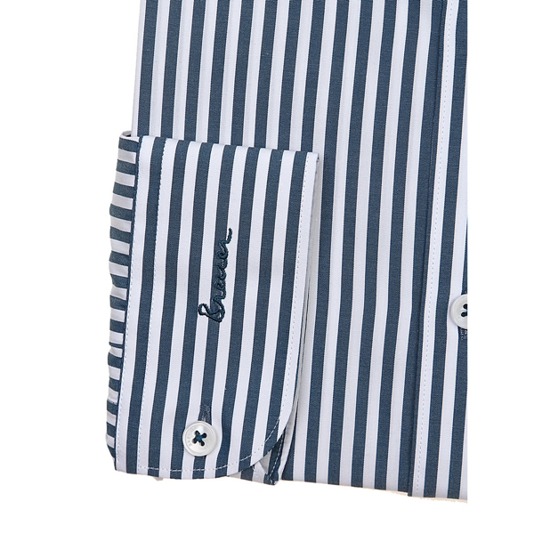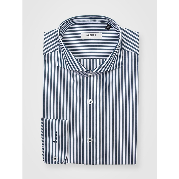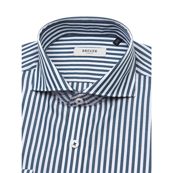 브로이어 블루 청록색 런던스트라이프 패턴의 와이드카라 스타일로