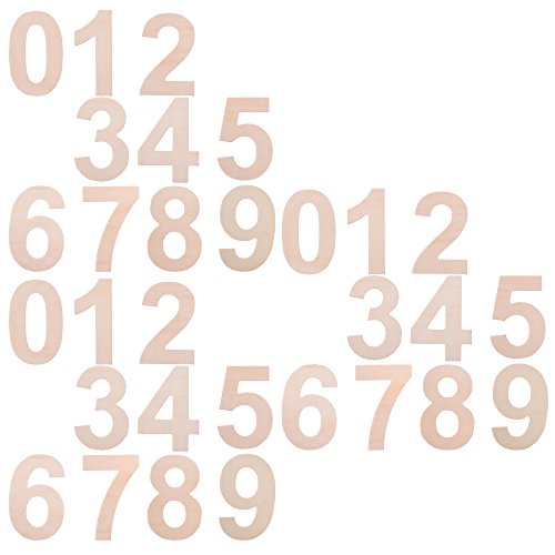 BCP Set of 30pcs Wood Craft Plywood Wooden Number 0 to 9, 2-7/8inches.