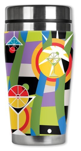 Mugzie Modern Martini Travel Mug with Insulated Wetsuit Cover, 16 oz, Black