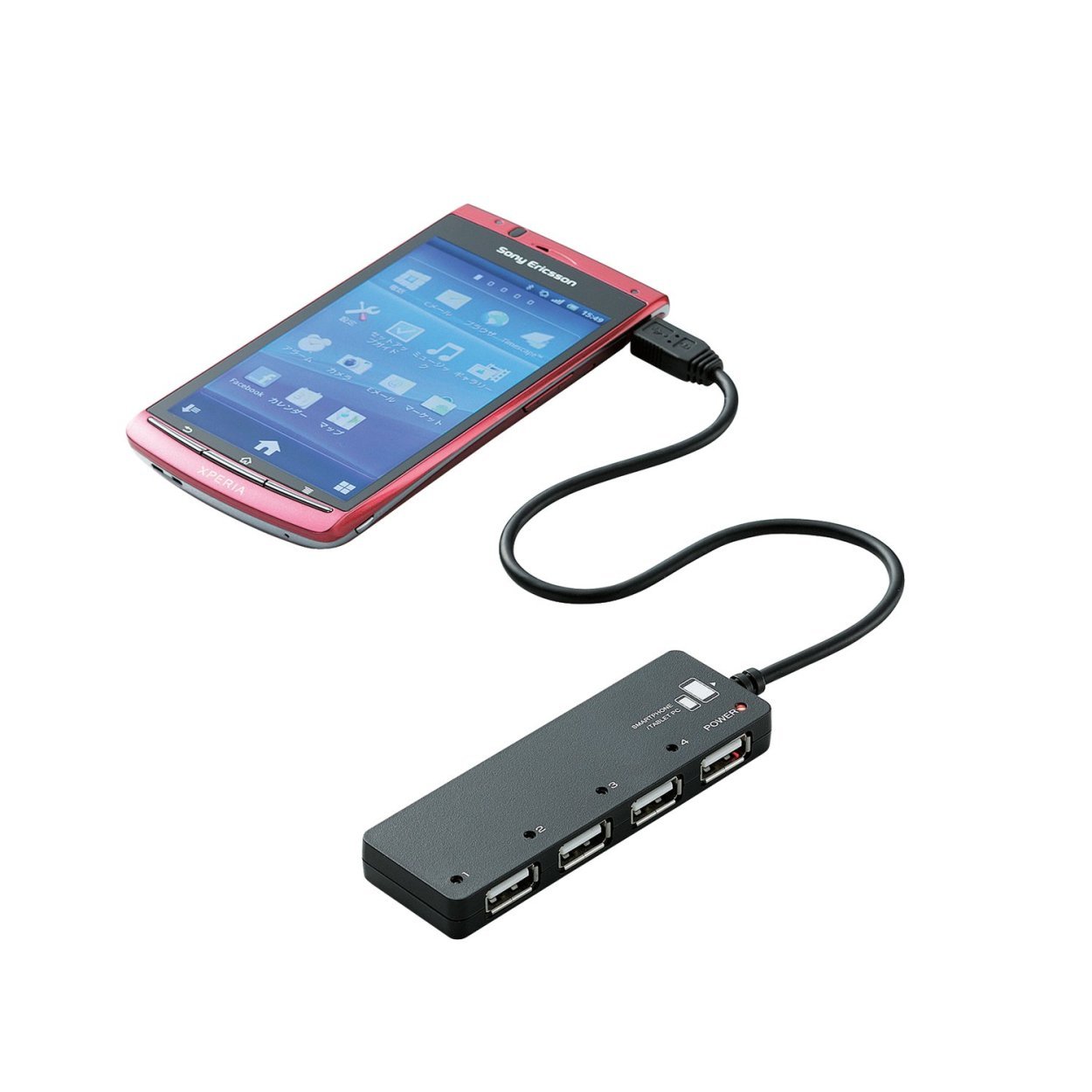 ■ It is a USB hub that can be used with smartphones and tablet PCs with a microB connector.