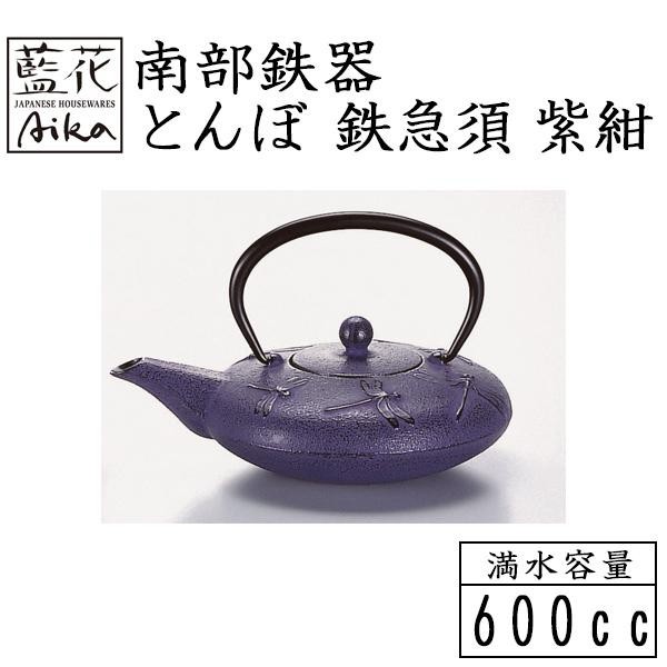 丸みを帯びた平らで特徴的なデザインに、「不退転」や「五穀豊穣を願う繁栄の象徴」と言われるトンボをあしらった南部鉄器の鉄急須です。 |