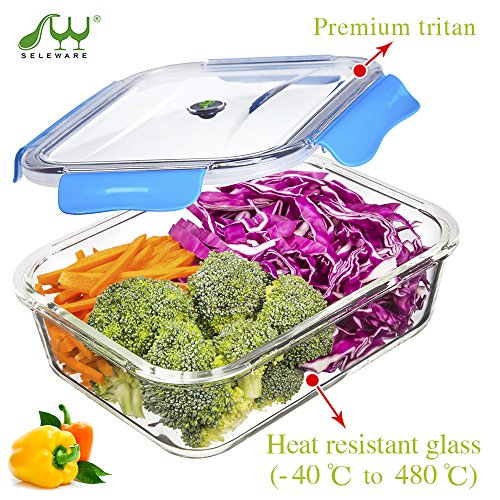 - PREMIUM MATERIAL: The container is made of borosilicate heat resistant glass, the lid is made of premium EASTMAN TRITAN,100% BPA and Phthalate free,100% FDA approved, good scratch, stains and odor resistance, very tougth, microwave, freezer and dishwasher safe