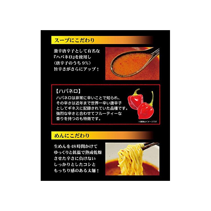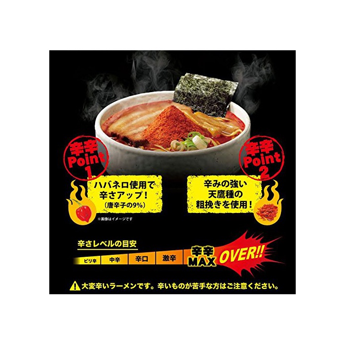 원재료:면(소맥분,식염)고, 스프(간장,포크 엑기스,동물 유지,고추(하바네로9%)고, 향기 맛유,당류,분말 가다랭이절,단백 가수분해물,치킨 엑기스,간장 조미료,포크 조미유,덱스트린,식염,포크 파우더,로스트 간장 조미액,마늘 Paste)/조미료(아미노산등)고, 증점제(가공 전분,증점다당류)고, 착색료(카라멜,파프리카 색소,치자나무)고, 물어 들이마시고, 향신료 추출물,산화 방지제(V.E,V.C)고, 향료,(일부에 난밀 참깨 대두 닭고기 돼지고기를 포함한다)