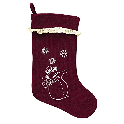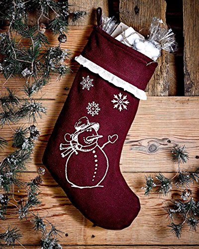 Burlap Merlot Snowflake Christmas Stocking Ruffled with Snowman 11x15 Inches Holiday Decoration