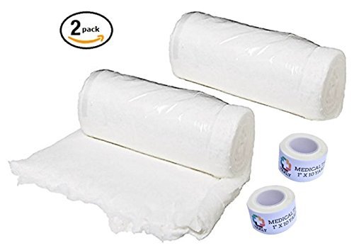 2 Pack Of 100% Cotton Rolls Plus 2 Rolls Of Vakly Medical Tape (2)