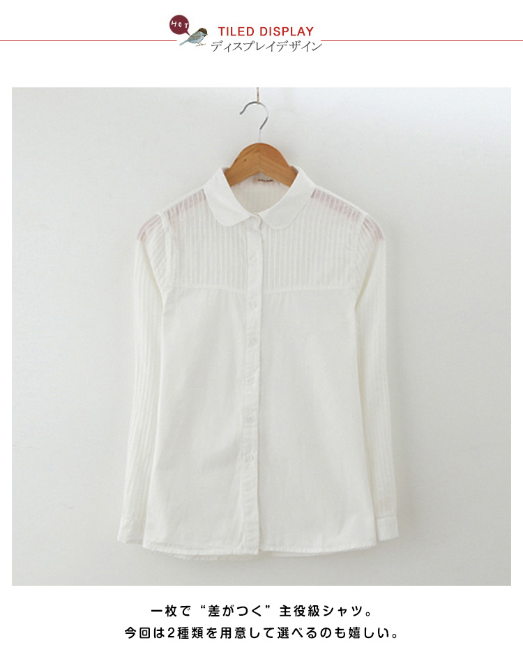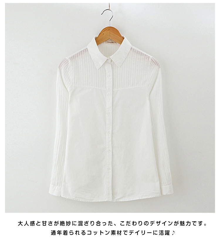 | ふんわりナチュラルに。一枚で“差がつく”主役級シャツ。今回は2種類を用意して選べるのも嬉しい。大人感と甘さが絶妙に混ざり合った、こだわりのデザインが魅力です。通年着られるコットン素材でデイリーに活躍♪長すぎず短すぎない絶妙な丈感で、どんなボトムスともバランスが取りやすく着回しに便利。 | |