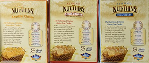 Blue Diamond Wheat & Gluten Free Nut & Rice Crackers 3 Flavor Variety Bundle: (1) Cheddar Cheese (1) Hint Of Sea Salt (1)Smokehouse - 4.25 Oz Each