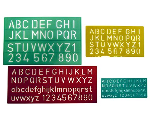 4 Piece Plastic Lettering Guide Stencil Set (10, 17, 20, 27mm Letter Size)