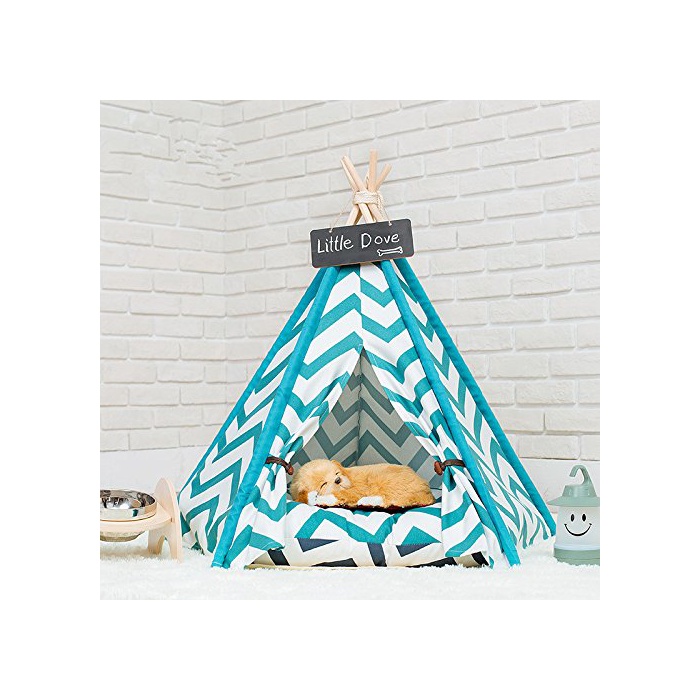 Milkee 개집 애완동물 텐트 소꿉놀이 하우스 플레이 텐트 개/고양이 소꿉놀이 스트라이프무늬 소형 개와 고양이용 실내복 떼내어 가능 T pea 비시 초귀여운 말씀하셔라 쿠션이 별