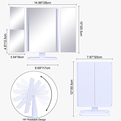 Trifold Design- Three pieces of mirrors provide wider view and optional visual angle. And you are allowed to adjust the mirror to any angle to meet your demands with the 180° rotatable function.