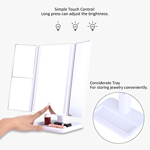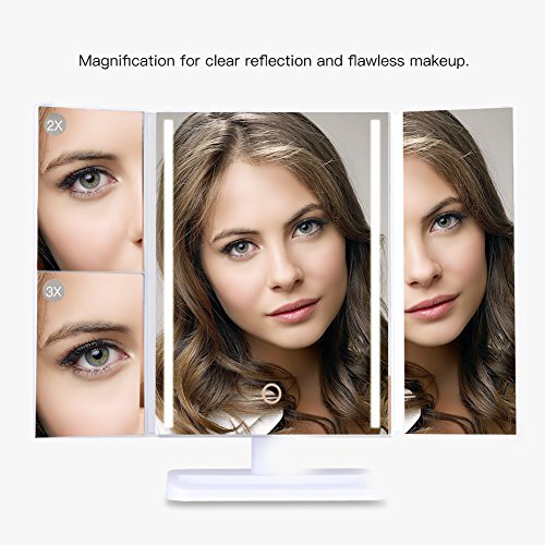 LEDGLE Trifold Makeup Mirror Clear Compact Vintage Mirrors with 24 LED Beads, 1X/2X/3X Magnifying, Rotatable Design, Touch Control