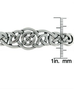 Celebrate your Celtic heritage with this fashionable, feminine sterling silver bangle. A pretty wax-molded Celtic weave flanks a central Circle of Life traditional knot on this bracelet, and the open-back design makes it easy to slip on and off. Made in the USA.Feature