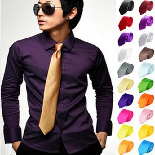 | [해외]1 개 패션 남성 액세서리 일반 컬러 솔리드 슬림 Norrow 수제 클래식 스키니 새틴 넥타이 웨딩 파티 100% 실크 넥타이 |