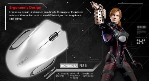 -. Title : Bondidea N86 Wireless Mouse for PC and MAC。6 Buttons, 3 Adjustable DPI Levels, 3200 DPI, 18-Month Battery Life,Battery and Mouse pad included!