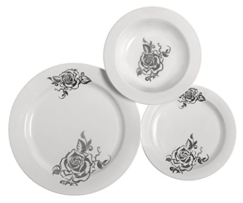 Table To Go "I Can't Believe its Plastic" 75-Piece Dinnerware Set, Includes 25 10-Inch Dinner Plates, 25 7.5-Inch Salad Plates and 25 18-Ounce Bowls, Flower Design