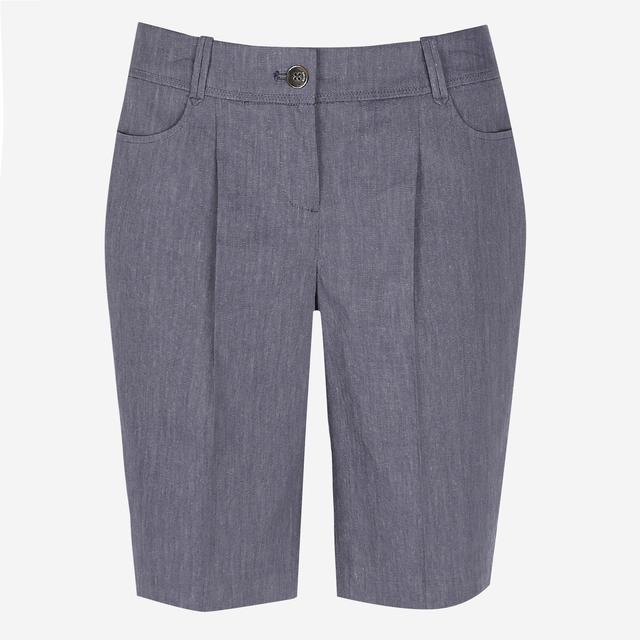 앞면 주름 장식과 마 소재감이 느껴지는 컬러감으로 모던한 외관을 보여주는 하프 팬츠입니다.