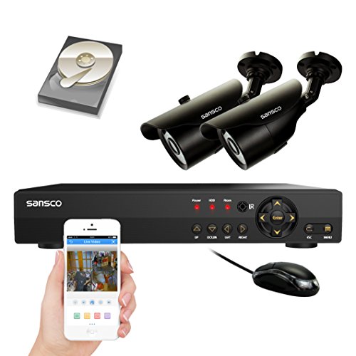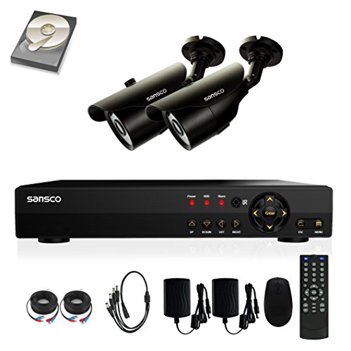 [UPGRADED] SANSCO 4-Channel 1080N DVR Recorder CCTV Security Systems with 2x HD 1MP Outdoor Cameras And 1TB Hard Drive (1280x720 Bullet Cam, Rapid USB Storage Backup, Vandal and Water-Proof Body)