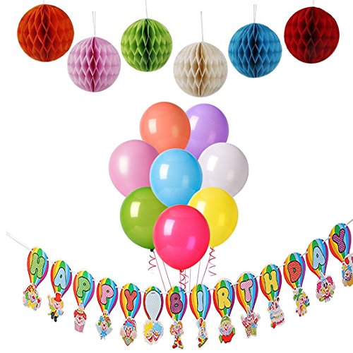 -. Feature : Comes with 1 happy birthday banner, 6 tissue pompoms and approx. 100 pieces ballons and string to hang the HAPPY BIRTHDAY letters together.. / Banner made out of sturdy cardstock. Size of these letters: 8.7 inch* 5.1 inch. Length of the banner: approx. 120 inch. Cute and unique design. 3D style. Material: paper. / 100 pieces ballons, assorted color. Green, red, pink, blue, gold, orange and so on. / Size of the tissue fowers: 6 inch. Color: Red Pink Orange Blue Green White. Color may vary sometimes. / This happy birthday decorations set should fulfill all your needs. Perfect for both kids and adults.