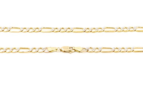 Guaranteed Real 10K Two Tone (Yellow & White Gold) Hollow Figaro Chain (not gold platted or gold filled) now available on best possible discounted price with FREE SHIPPING (in USA only) & FREE GIFT BOX.