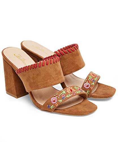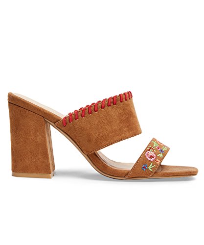 Product Description Bring carefree boho vibes to your summer look. These beautiful tan mules are adorned with funky embroidery and wrap-around stitching for that true free-spirit feeling. 0