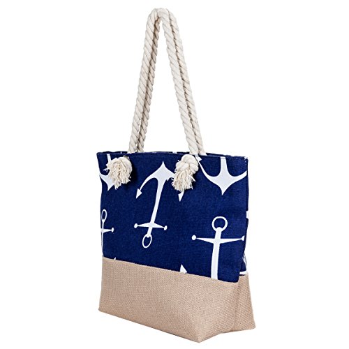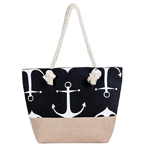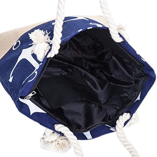 Beach Tote Bag MISS FANTASY Large Anchor Canvas Tote Straw Bag Summer Bag for Pool