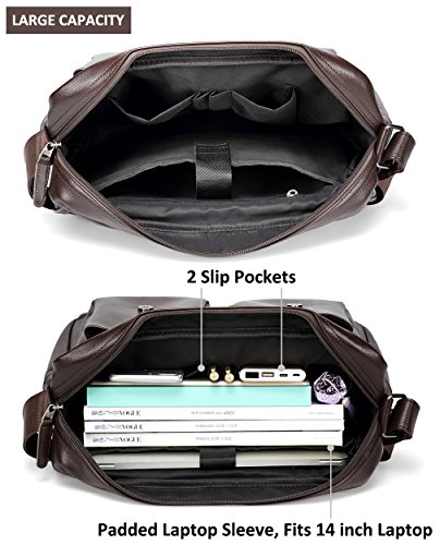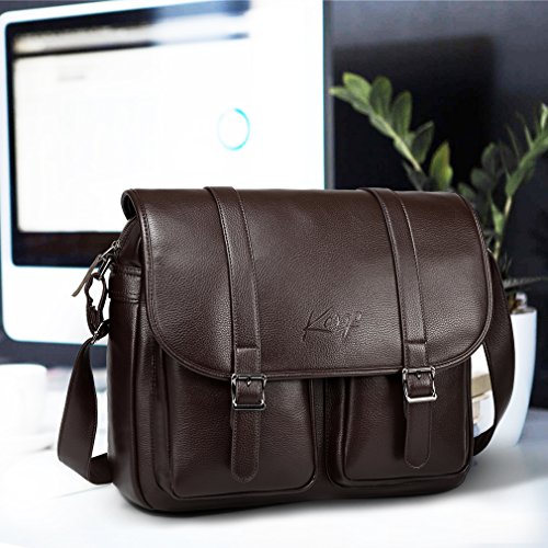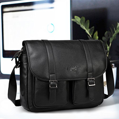 -. Title : Messenger Bag for Men, Kasqo Waterproof Faux Leather Shoulder Bag Fits 14 inch Laptop Business Crossbody Bag