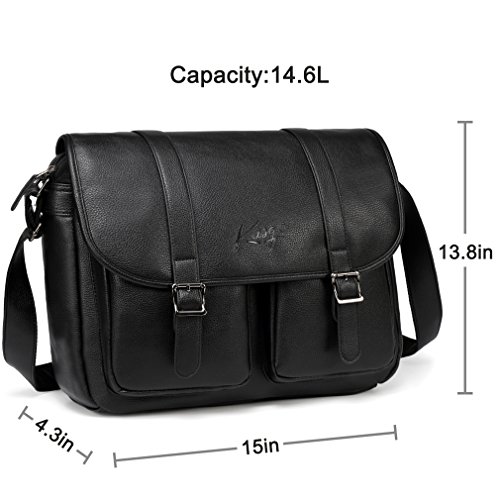 -. Feature : ✓DURABLE: The Kasqo messenger bag is made of soft, comfortable, waterproof, durable faux leather. The waterproof material can keep your belongings dry and the fully faux leather makes the messenger bag looks concise and elegant. / ✓EASY TO ORGANIZE: The leather messenger bag features adjustable straps and smooth SBS zipper. A main zipped compartment for books, A4 binders, and a padded laptop sleeve for 14 inch laptop. One inside and back zipped pocket for important items such as wallet, ID card. Two large front open pocket for easy access to commonly used items. Two small inside pockets for phone, glasses and two inside pen pockets. / ✓LARGE CAPACITY: Exterior Dimensions: W38xD11xH35cm/15x4.3x13.8in, Weight: 0.9kg/1.98lb, Capacity: 14.6L/0.52cuft, Laptop sleeve dimensions: W33xD5xH25cm/13x2x9.8in, Fits 14 inch Laptop, Strap length: 75-135cm/30-53in / ✓CASUAL & ELEGANT: Gorgeous concise design makes the leather messenger bag looks chic and elegant. It is suitable for those who like casual or can be used as a professional business shoulder bag. / ✓IDEAL GIFT: This leather messenger bag is perfect for school, college, work, travel, carrying your 14 inch laptop, A4 binders, books and notebook, which making it as a perfect gift for your loved ones or a treat for yourself. All the Kasqo products are with one year warranty.