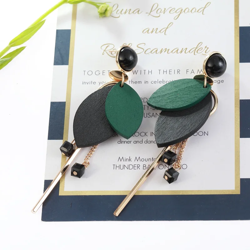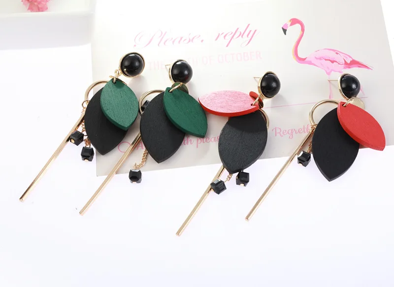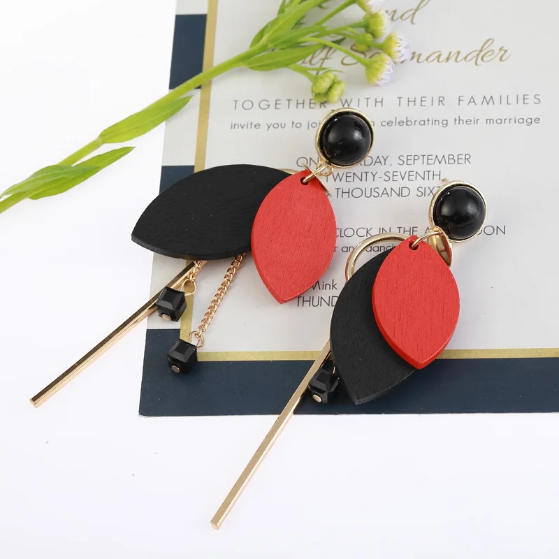 wood earring:dangle drop earrings