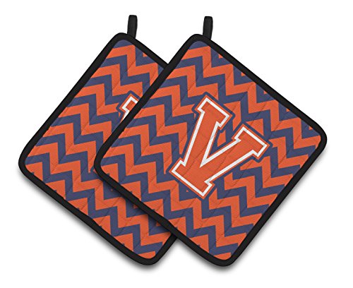 Caroline's Treasures Letter V Chevron Orange & Blue Pair of Pot Holders CJ1042-VPTHD, 7.5HX7.5W, Multicolor
