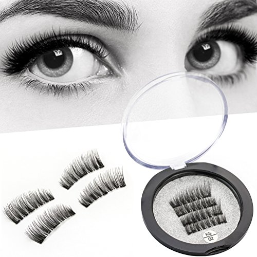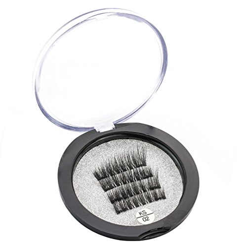 Magnetic Eyelashes, KINGMAS 3D Fiber Reusable Best Fake Lashes No Glue False Eyelashes (1 Pair 4 Pieces)