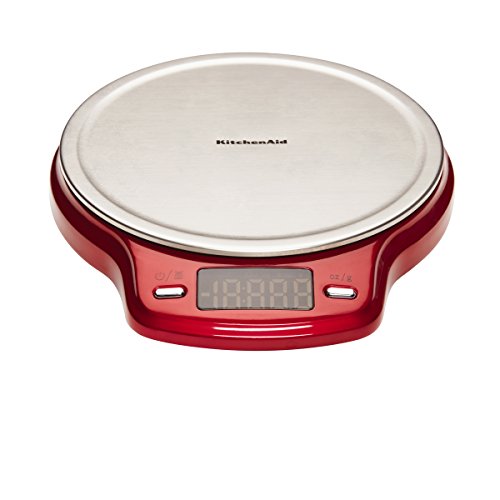-. Binding : Kitchen -. Brand : KitchenAid -. Color : Red -. EAN : 0024131392926 -. Feature : Precisely weigh wet and Dry ingredients or portions of food / Easy two button operation with on/off and Tare / Platform accepts plates, bowls and the stand mixer bowl without blocking the display / Weights up to 22lbs / To clean, hand wash only -. Label : KitchenAid -. Manufacturer : KitchenAid -. Model : KD151BXERA -. NumberOfItems : 1 -. PackageQuantity : 1 -. ProductGroup : Kitchen -. ProductTypeName : KITCHEN -. Publisher : KitchenAid -. Studio : KitchenAid -. Title : KitchenAid Stainless Steel Easy-Red Digital Scale, Red -. UPC : 024131392926