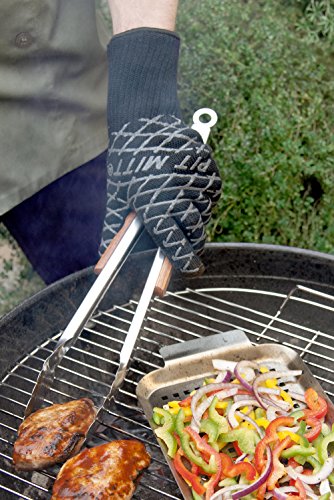 Handle hot items around and directly off a very hot grill with Charcoal Companion's Pit Mitt, an aramid fiber glove with soft blended cotton lining. Reversible for left or right hand, the Pit Mitt has a silicone-textured surface for superior grip.