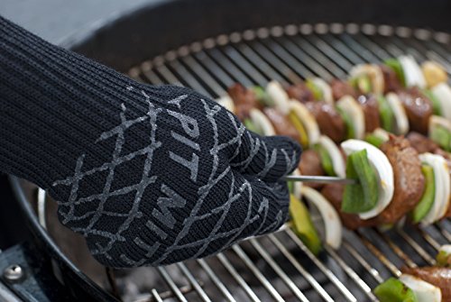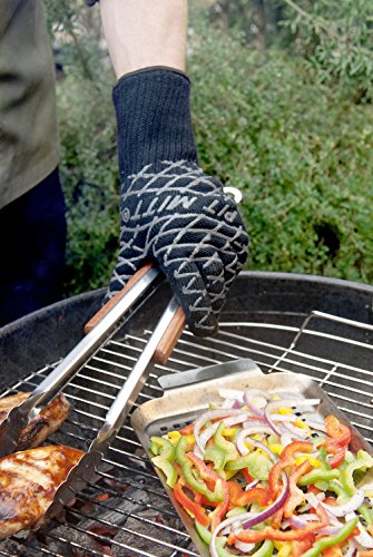 The glove's aramid fibers are the same as used in spacesuits and firefighter gear. The fit of this glove allows for more pronounced usage around and on the grill surface. You can easily pick up and handle small skewers or handles that might be difficult to do with other grill gloves. And the glove extends past the wrist for more protection of the hand and lower arm, which makes it great for dumping a chimney full of blazing hot coals, or replacing a screaming hot grill grate. Wear this glove on either the right or left hand and rest assured that you've got a great, heat resistant grip with the textured silicone pattern on the glove's exterior.