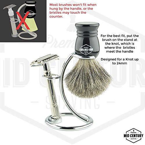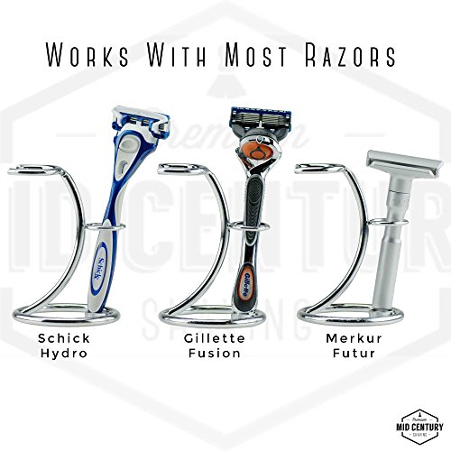 Mid Century Shaving Razor and Brush Stand (Silver) - Heavy Chrome Shaving Stand, Safety Razor Stand, Shaving Brush Stand - Holder for a Shave...