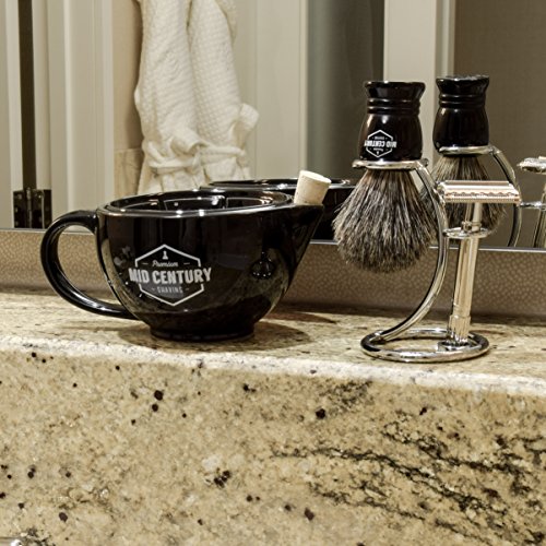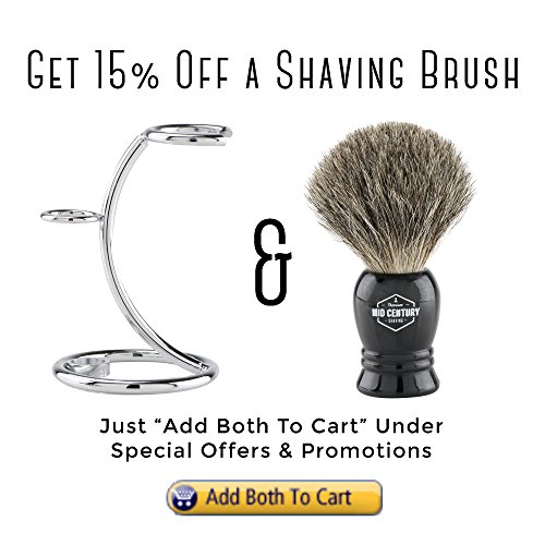 Attractive chrome plated shaving stand looks great with your shave brush and safety razor or cartridge razor