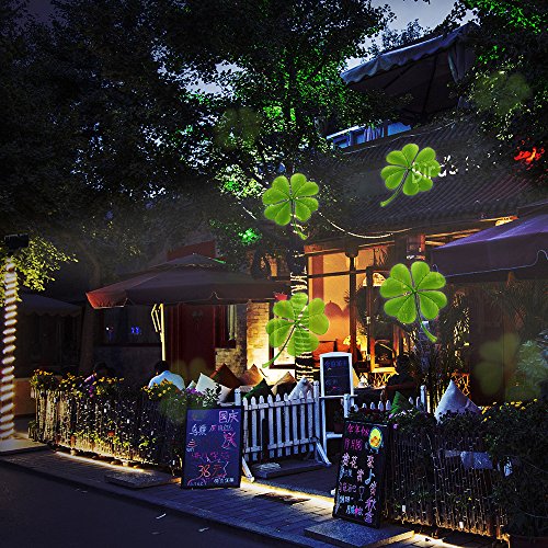-. Feature : Holiday Decorative Projector Light: 14 pieces gobo card included with different themes for most occasions--- Thanksgiving, Christmas, Halloween, Carnival, birthday, snowflakes, candy, clovers, sea creatures, beetles, love, star & moon, mushroom & snail, sea mew & boat / 4-Mode High Quality LED Projector: 4 speed modes available--- Slow, mid, fast and static; Adopt 4 pieces excellent OSRAM LED beads. Max irradiation distance up to 5m / 16.4ft / Built-in Smart Timing Function: the light will automatically turn off after continuously working for 6 hours and then automatically turn on again after 18 hours / Waterproof & Widely Using: Adopt IP44 waterproof technology, suitable for both outdoor and indoor use, add charming & romantic atmosphere for your home, gardens, patio, lawn, etc. / Easily Install & Guarantee: 180 degrees lighting angle, this light can be installed on a wall or pled in garden lawn. 1-YEAR MONEY BACK-If you are not satisfied with your purchase, and we accept return for a full refund