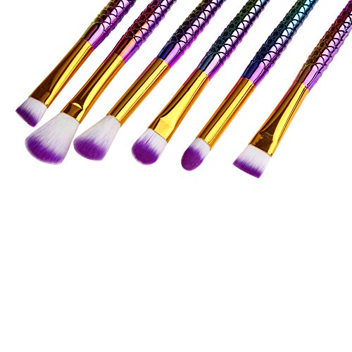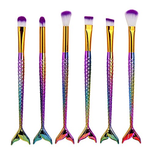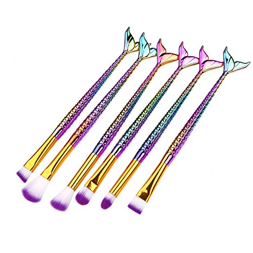 Kanzer 6Pcs Pro Mermaid Makeup Brushes Set Powder Foundation Eyeshadow Lip Brush Cosmetics Tool
